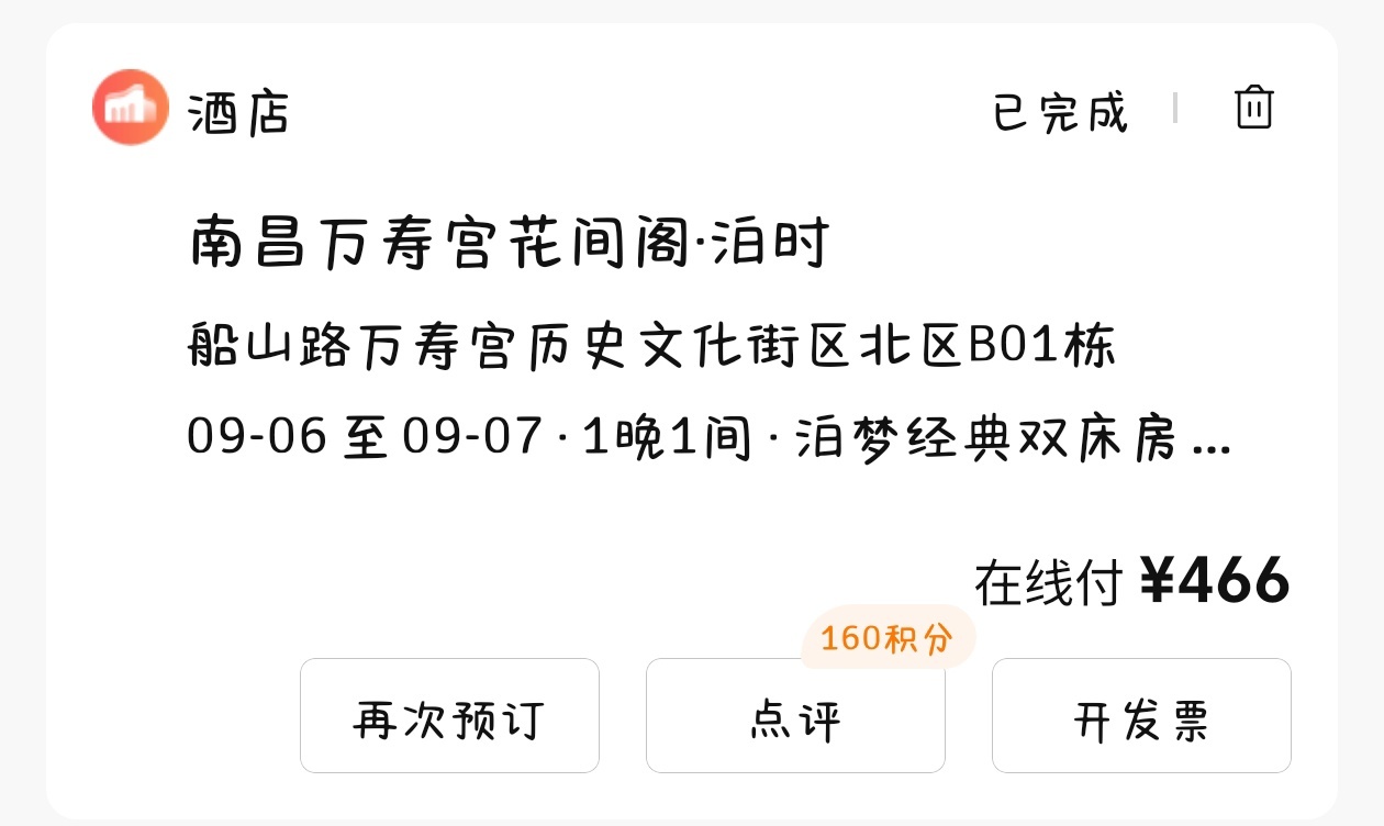 我与兄弟入住酒店为,南昌万寿宫花间阁·泊时
